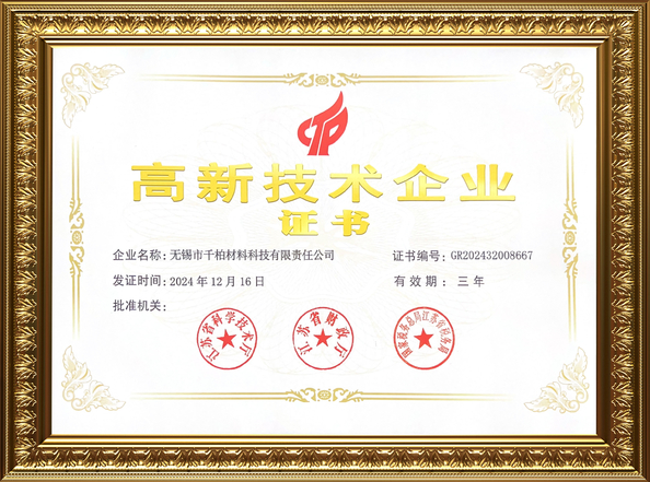 Tiêu chuẩn:Jiangsu Province High Innovation Technology Enterprise Certification Số:GR202432008667 Ngày phát hành:2024-12-16 Ngày hết hạn:2027-12-15