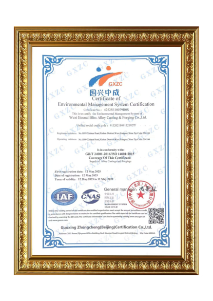 Tiêu chuẩn:ISO14001 Số:42525E10079R0S Ngày phát hành:2025-05-12 Ngày hết hạn:2028-05-11